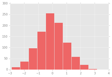 ax.hist(x,edgecolor='#E6E6E6', color='#EE6666')